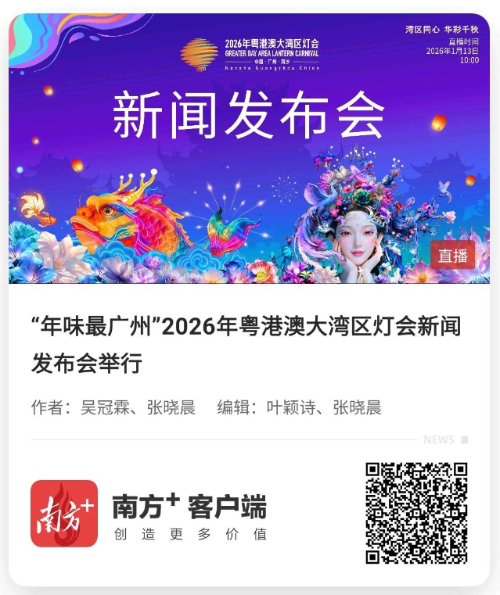 “广州过年 花城看花”——“年味最广州”2026年粤港澳大湾区灯会新闻发布会将邀请广州市南沙区相关负责人介绍2026年粤港澳大湾区灯会的活动安排与特色亮点。