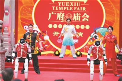 “潮涌湾区·活力广府”,展现传统与现代的双向奔赴,尽显广府文化的包容与创新。梁山山、彭永琛、莫家淦三位粤港澳歌手同台唱响《湾区同声乐升平》,悠扬歌声串联起湾区同心的深情厚谊。广州火花机器人有限公司携手越秀区武术协会带来武术表演《智武耀广府》,机器人与武术健儿同台竞技。