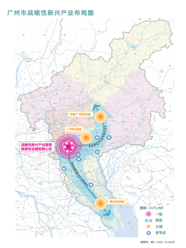 立足广州市城市空间战略布局和产业发展基础,围绕粤港澳大湾区广深港、广珠澳科技创新走廊建设,努力构建“一核、两带、三城、多节点”的广州市战略性新兴产业空间新格局,培育壮大战略性新兴产业发展的动力源和增长极。